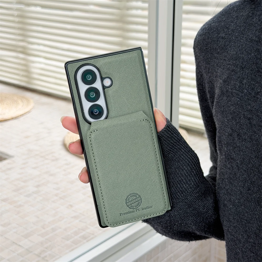 2 in 1 Magnetic Leather Wallet Cards Solt Phone Case for Samsung Galaxy Fold 7 6 5 4 3 Wireless Charging Holder Protective Cover